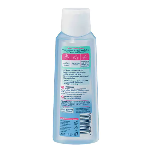 برند باله آ یک برند آلمانی است که به طور تخصصی در زمینه تولید محصولات مراقبت از پوست فعالیت می کند.در فروشگاه فارماویتان تمام محصولات اورجینال باله آ از جمله تونر صورت که با نام تونر باله آ مخصوص پوست چرب و مستعد جوش است با قیمتی مناسب و اصل و با کیفیت موجود می باشد.یکی از بهترین و با کیفیت ترین تونر های موجود در بازار بدون شک تونر اورجینال باله آ محصول کشور آلمان می باشد که یکی از بهترین برند های اروپایی به حساب می آید.تونر پوست چرب و ضد آکنه balea در حجم 200 میل پوست آلوده را از جوش و مخصوصا جوش های سر سیاه پاک می کند .سالیسیلیک اسید و روی یا همان زینک موجود در این تونر باعث پاکسازی عمیق پوست صورت می شود و از ایجاد جوش جلوگیری می کند.تونر ضد جوش باله آ به عمق منافذ نفوذ کرده و تمام آلوگی های پوست صورت را پاک می کند و همچنین سلول های مرده پوست را پاکسازی می کند و پوستی نرم و روشن را به شما هدیه خواهد داد.این تونر بدون الومینیوم،پارابن و پارافین است و کاملا وگان می باشد. ویتامین E موجود در این تونر کاملا با خشکی بیش از حد پوست مقابله می کند و علاوه بر اینکه رطوبت را در خود به خوبی نگه می دارد پوست را آبرسانی می کند و از خشکی و کشیده شدن پوست جلوگیری می کند.تونر باله آ مخصوص پوست چرب و مستعد جوش مناسب خانم ها و آقایان نیز می باشد و می توانید با قیمت مناسب و اقتصادی از فروشگاه فارماویتان خرید نمایید.