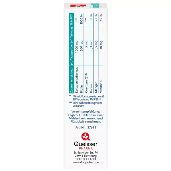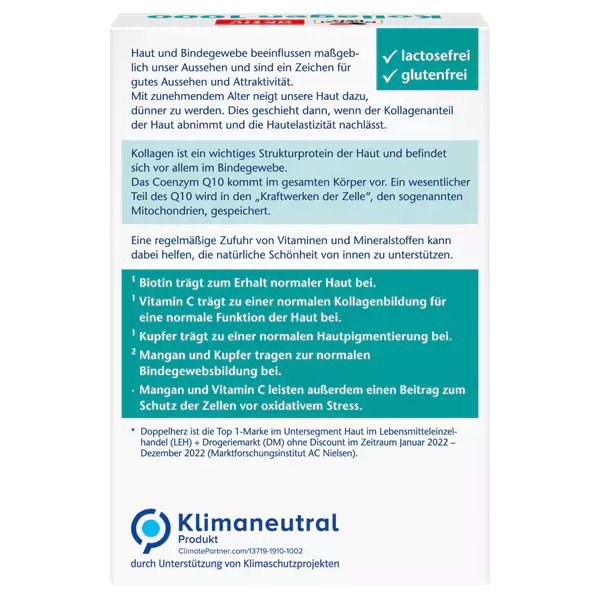 یکی از دلایل موفقیت برند داپل هرتز آلمان ارائه نمونه های بسیار فراوان از انواع مکمل و ویتامین است که کاربرد بسیار فراوان برای افراد مختلف دارد و می تواند اثر گذار باشد.همان طور که می دانیم کلاژن پروتئینی است که در تمام بدن وجود دارد و در واقع ترکیب اصلی سازنده ی غضروف؛ عضلات، استخوان ها، پوست و تاندون ها محسوب می شود. خودمان می توانیم با تغذیه اصولی و حساب شده و همچنین نحوه زیست درست اقدام به حفظ کلاژن نماییم و قرص و مکمل کلاژن 1000 دوپل هرز حاوی biotin و Q10 یکی از محصولات بسیار ارزشمند است که حاوی 30 عدد قرص کلاژن به همراه ویتامین سی می باشد چون این ویتامین باعث جذب هر چه بیشتر کلاژن می شود. علاوه بر پوستمان، ناخن ها، دندان ها، غضروف ها و حتی روده ها را تحت تاثیر مثبت قرار می دهد.