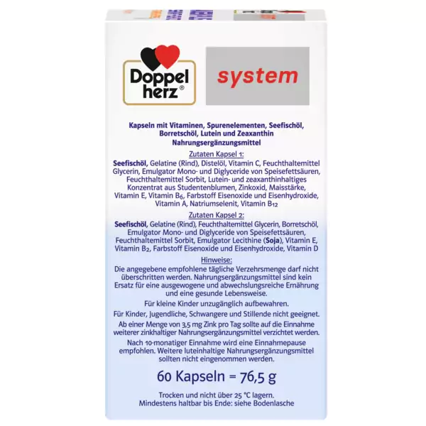 اهمیت بسیار بالا در داشتن سلامت بینایی و مراقبت از چشم ها سبب گردیده که برند آلمانی داپل هرتز محصول بی نظیری را ارائه نماید تا دید خوب یعنی کیفیت زندگی برخی افراد حفظ شود.مکمل تقویت چشم و بینایی دوپل هرز 60 عددی شامل دو عدد کپسول A و B حاوی غلظت بالایی از اسیدهای چرب امگا 3 می باشد و کنسانتره امگا 3 دارای محتوای اسید چرب امگا 3 55 درصد است. محصولات روغن ماهی حاوی حدود 30٪ ،ویتامین ها و عناصر کمیاب انتخاب شده و اسیدهای چرب چند غیر اشباع برای تامین مواد مغذی چشم و ترکیب مواد مغذی فوق العاده برای کمک به سلامت چشم می باشد که افراد مسن بسیاری که دارای دید خوب و کافی نیستند مشتریان این محصول هستند.