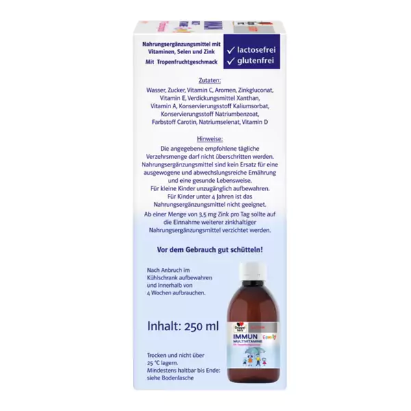 استفاده از انواع مکمل و ویتامین و مولتی ویتامین برای سیستم دفاعی تمام افراد خانواده چه کوچک و چه بزرگسال یک نیاز محصوب می شود.با مصرف روزانهمولتی ویتامین خانواده IMMUN برند Doppelherz، کل خانواده می توانند مواد مغذی بسیار ارزشمندی را دریافت نمایند و در نتیجه به سیستم ایمنی و سلامتی کمک بسیاری میکند.افراد خانواده زمانی که هوا بیرون مرطوب و سرد یا آفتابی و گرم است، نیاز به یک سیستم دفاعی خوب دارند. این به معنای کار سخت برای سیستم ایمنی ما است و برای حمایت از سیستم ایمنی بزرگسالان و کودکان می تواند بسیار مفید باشد.شربت مولتی ویتامین ایمیون خانواده دوپل هرز (IMMUN ) عناصر کمیاب و ویتامینهای انتخابی را برای سیستم ایمنی و محافظت از سلولها را تامین میکند و طعم میوههای استوایی بسیار بی نظیری دارد و می تواند هم به بزرگسالان و هم به کودکانی که در مصرف کپسول مشکل دارند کمک کند تا از منابع تغذیه ای خود برای عملکرد طبیعی سیستم ایمنی حمایت کنند.