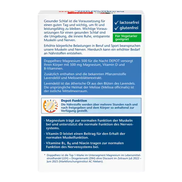 ما حدود یک سوم زندگی خود را در خواب می گذرانیم. ما معمولاً در عصر خسته می شویم و نمی توانیم تمرکز کنیم. و هنگامی که خورشید غروب می کند، غده صنوبری در مغز ما شروع به تولید هورمون خواب ملاتونین می کند.در طول خواب، کل بدن از زمان خود برای ریکاوری استفاده می کند. به عنوان مثال، ماهیچه های ما در تمام طول روز کار می کنند – در حالی که ما می خوابیم، سلول های ماهیچه ای می توانند بازسازی شوند.منیزیم از عملکرد طبیعی ماهیچه ها پشتیبانی می کند، بنابراین در آرامش آنها نقش دارد و این در شب نیز صدق می کند.این ماده معدنی حیاتی همچنین در تحریک پذیری سلول های عصبی نقش دارد، زیرا به عملکرد طبیعی سیستم عصبی کمک می کند. این یک پیش نیاز مهم برای خواب آرام است!در واقع، سطح منیزیم در شب اندکی کاهش می یابد. قرص شبانه منیزیم 500 Doppelherz در شب مصرف می شود برای عضلات آرام در شب!عملکرد انبار تضمین می کند که مواد مغذی به تدریج طی چند ساعت آزاد می شوند و بنابراین به طور مداوم در دسترس بدن قرار می گیرند.