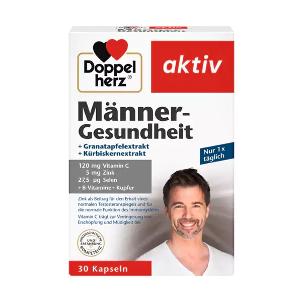 استفاده از برخی انواع مکمل و ویتامین خارجی برای آقایان و بانوان که دارای فعالیت بدنی بالا و یا کسانی که حرفه ای ورزش می کنند ضروری است و باید از برند معتبر و نوع درست آن را انتخاب و خرید نماییم.مکمل سلامت مردان دوپل هرز آلمان سطح تستوسترون + سیستم ایمنی بدن حاوی 120 میلیگرم ویتامین C، ویتامینهای ارزشمند گروه B و عناصر کمیاب روی، سلنیوم و مس می باشد. همچنین حاوی 270 میلیگرم عصاره انار و 120 میلیگرم عصاره دانه کدو تنبل است.به حفظ سطح طبیعی تستوسترون و عملکرد سیستم ایمنی کمک میکند. سلنیوم به تشکیل طبیعی اسپرم کمک میکند. سلنیوم به حفظ موهای طبیعی کمک میکنند.مس از رنگدانه طبیعی مو پشتیبانی میکند.ویتامینهای B1 و B12 به متابولیسم طبیعی انرژی کمک میکند.ویتامین B1 به عملکرد طبیعی قلب کمک میکند.ویتامین B6 به تنظیم فعالیت هورمونی کمک میکند.ویتامین C به کاهش خستگی و کوفتگی کمک میکند. علاوه بر این، این ویتامین محلول در آب از عملکرد طبیعی سیستم ایمنی و محافظت از سلولها در برابر استرس اکسیداتیو پشتیبانی میکند.