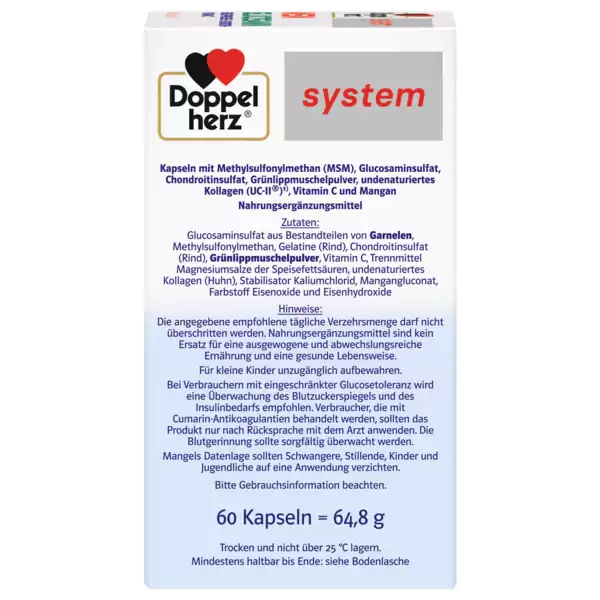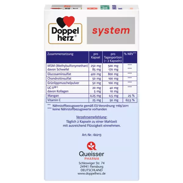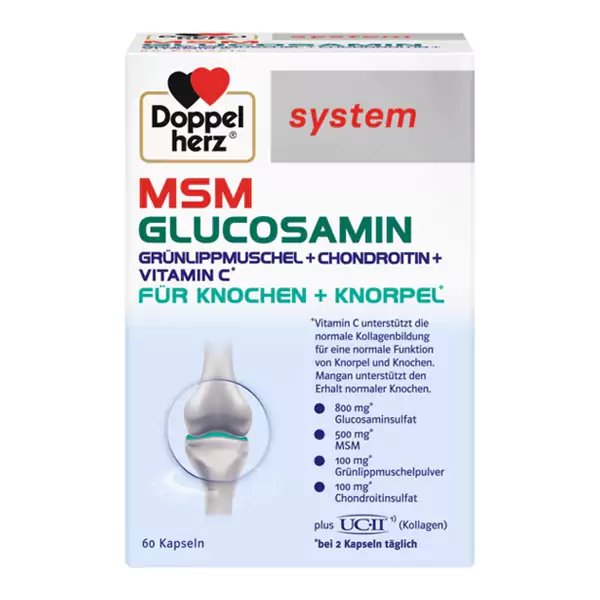 برند داپل هرتز با ارائه MSM Glucosamine Doppelherz حاوی ویتامین C و منگنز و ویتامین C ، به تشکیل کلاژن طبیعی برای عملکرد طبیعی غضروف و استخوان کمک می کند.منگنز به حفظ استخوان های طبیعی کمک می کند. علاوه بر این، منگنز به تشکیل بافت همبند طبیعی کمک می کند.