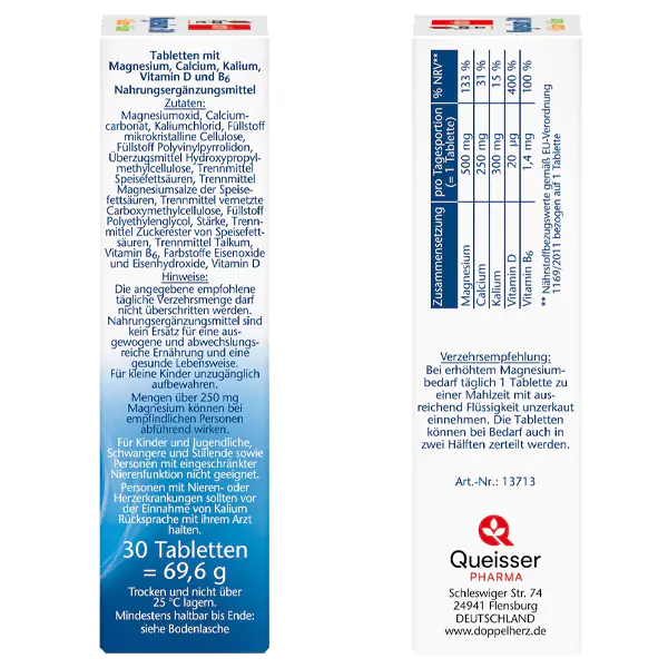 تا کنون از برند داپل هرتز محصولات بسیار با کیفیت در زمینه انواع مکمل و ویتامین مشاهده نموده ایم و اکنون برای بسیاری از علاقمندان محصولات آلمانی نمونه ای بی نظیر از ویتامین کلسیم و منیزیم به همراه پتاسیم آورده ایم.قرص منیزیم 500+کلسیم+پتاسیم دوپل هرز 30 عددی دارای سه ویتامین اساسی برای بدن است که می تواند ساختار اسکلتی و مفاصل و ماهیچه ها را تقویت کرده و آماده نگه بدارد.منیزیم موجود در این قرص به بهبود عملکرد عضلات، کاهش خستگی، تولید انرژی و ایجاد تعادل در الکترولیت ها کمک کرده و وجود ویتامین K2 نیز از رسوب کلسیم در بافتهایی مانند عروق، کلیه و سایر بافتهای نرم پیشگیری میکند، همچنین در افزایش ذخیره کلسیم استخوانها نقش مهمی دارد. ویتامین D3 موجود در قرص منیزیم و کلسیم Tetesept موجب افزایش جذب کلسیم می شود و علاوه بر تقویت استخوان ها در تقویت سیستم ایمنی بدن نیز نقش بسزایی را ایفا خواهد کرد. قرص منیزیم و کلسیم 500 تتسپت به همراه ویتامین های K2 و D3 یک مکمل بی نظیر برای تامین نیاز بدن به این مواد معدنی بوده و شما را از خرید محصول دیگری بی نیاز خواهد کرد.