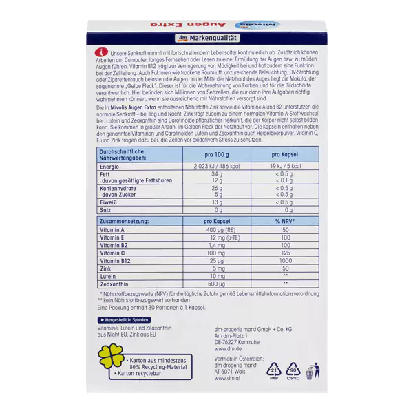 اهمیت مراقبت و نگهداری از عضو بسیار مهم در بدن به عهده ما می باشد و چشم ها از اعضاء بسیار حیاطی برای ما می باشند.با افزایش سن افراد و یا نگهداری نادرست از این عضو می تواند خطرات بسیار بالایی را ایجاد نماید و بروز مشکلات را همراه داشته باشد.برند میوولیس توانسته یک محصول بسیار بی نظیری را ارائه دهد که برای تقویت و حفظ شرایط پایدار بینایی مفید می باشد.این مکمل و ویتامین حاوی مقادیر مناسب از ویتامینهای A و B12 است که برای شبکیه چشم و حفظ حالت مرطوب بودن کمک شایان نماید و در کل از ویتامین B12 برای رفع خستگی نیز استفاده فراوان می گردد.باید توجه نمود این محصول یعنی کپسول تقویت چشم و بهبود بینایی میوولیس به صورت کپسول می باشد که باید بر طبق دستور استفاده و بروشور داخل آن مورد استفاده قرار بگیرد.