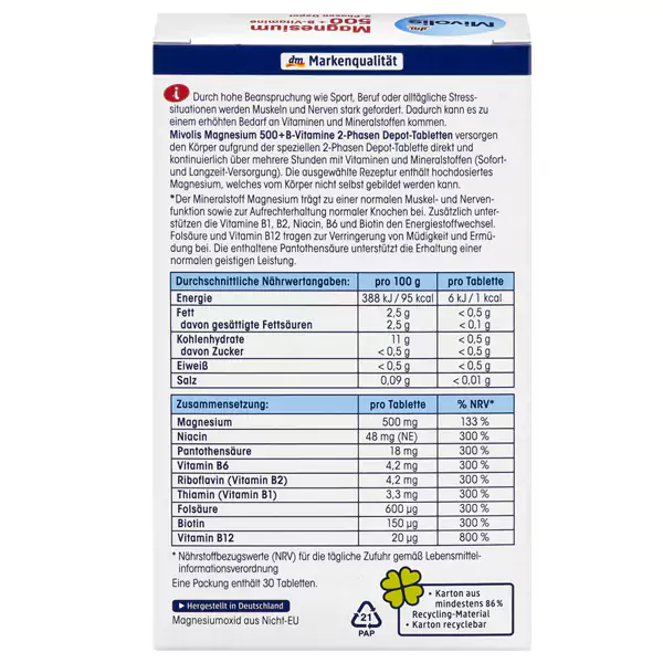 بررسی مکمل منیزیم 500 و ویتامین B میوولیس 30 عددی: