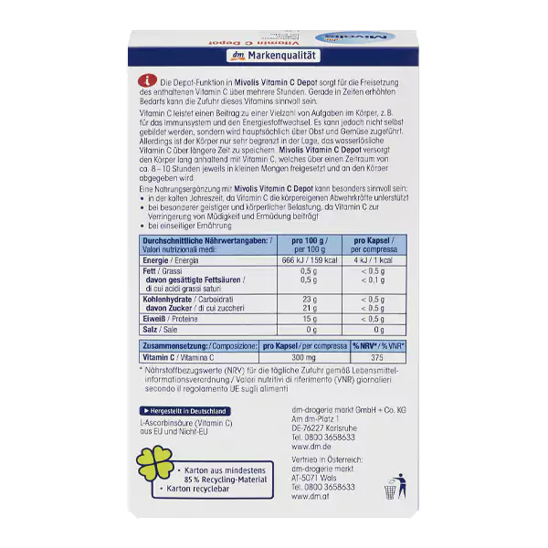 یکی از محبوب ترین مکمل و ویتامین خارجی مورد استفاده برای بسیاری از خانم ها و آقایان ویتامین c است و ویتامین C به عملکرد طبیعی سیستم ایمنی بدن کمک میکند.مکمل ویتامین C میولیس آلمان 40 عددی به دلیل آزادسازی ویتامین C موجود در طول چند ساعت میتواند به ویژه در مواقع نیاز بیشتر مفید باشد. ویتامین C در عملکردهای مختلف بدن مانند سیستم ایمنی و متابولیسم انرژی نقش دارد. با این حال، بدن نمیتواند آن را تولید کند و در درجه اول از طریق میوهها و سبزیجات به دست میآید. توانایی بدن برای ذخیره این ویتامین C محلول در آب برای مدت طولانی بسیار محدود است. میوولیز ویتامین C دپو، تأمین طولانی مدت ویتامین C را برای بدن فراهم میکند و مقادیر کمی را در طول تقریباً 8 تا 10 ساعت آزاد میکند. مصرف مکمل میوولیز ویتامین C دپو میتواند به ویژه در ماههای سردتر مفید باشد، زیرا ویتامین C از دفاع طبیعی بدن پشتیبانی میکند؛ در دورههای افزایش استرس ذهنی و جسمی، زیرا ویتامین C به کاهش خستگی و کوفتگی کمک میکند.