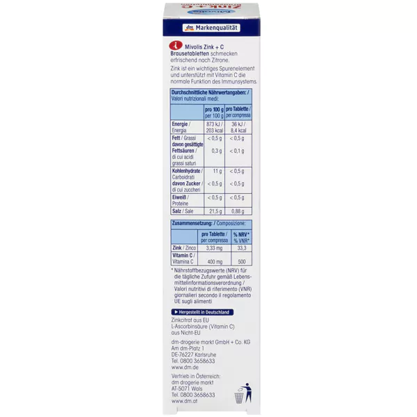 شرکت MIVOLIS در کشور آلمان مستقر است و با سابقه بیست ساله در زمینه تولید محصولات مکمل و ویتامین و سلامتی مشغول به فعالیت میباشد. اساس این شرکت تولید محصولات با کیفیت با مواد اولیه مرغوب میباشد. که این امر در واحد کنترل کیفیت بررسی و کیفیت محصولات تضمین میشوند.قرص جوشان mivolis تولید کشور آلمان میباشد. این قرص حاوی ویتامین های ضروری روی و سی میباشد که جهت نیاز های بدن در سنین مختلف می باشد. این قرص جوشان میوولیس فاقد گلوتن و لاکتوز میباشد و نکته مهم در این محصول این است که گیاهی میباشد و فاقد هرگونه مواد حیوانی و افزودنی میباشد. هر روز یک قرص جوشان را در یک لیوان آب (تقریباً 150 میلی لیتر) حل کنید.