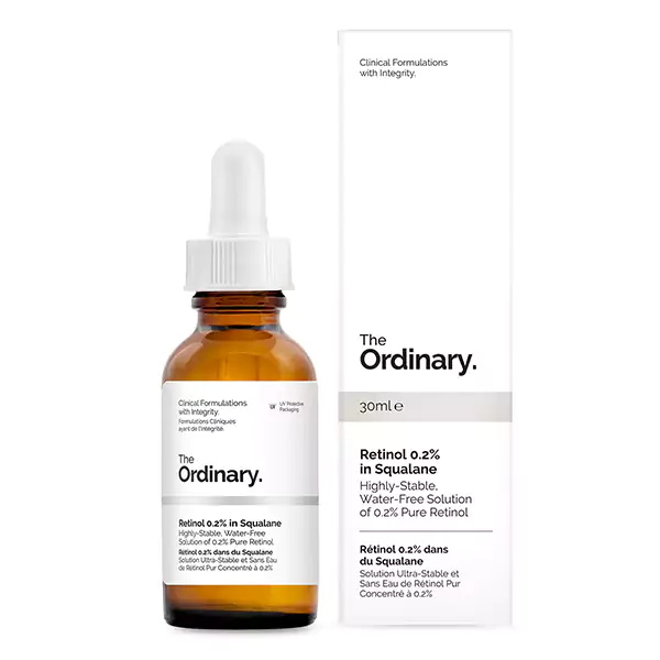 سرم رتینول 0.2% اوردینری (The Ordinary Retinol 0.2% in Squalane) یک سرم جوانساز حاوی رتینول با غلظت 0.2 درصد در اسکوالان می باشد. این سرم حاوی رتینول خالص بوده و علائم پیری و خطوط و چروک ریز صورت را کاهش می دهد و مناسب در نمونه محصولات مراقبت صورت است. سرم ضد چروک رتینول اوردینری انواع لکه ها و تیرگی های ناشی از آفتاب و افزایش سن و … را بهبود داده و پوست را روشن می کند. این سرم همچنین تاثیر زیادی بر روی یکدست شدن ناهمواری های بافت پوست داشته و پوستی سالم و شاداب به ارمغان می آورد.
