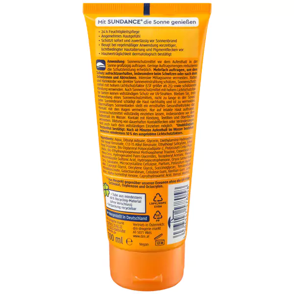 مدل این کرم sonnencreme بوده و ارائه شده در حجم 100 میلی لیتر می باشد.این محصول دارای اس پی اف 50 است که به نسبت ضد آفتاب سان دنس با اس پی اف 30 محافظت بسیار قوی تری در برابر آفتاب دارد. این محصول گیاهی مناسب برای انواع پوست نرمال ،خشک می باشد.کرم ضد آفتاب سان دنس تمام ضررهای ناشی از آفتاب را از بین می برد و به عنوان یک ضد آفتاب قوی از پوست شما در برابر اشعه های مضر UVA و UVB محافظت میکند.